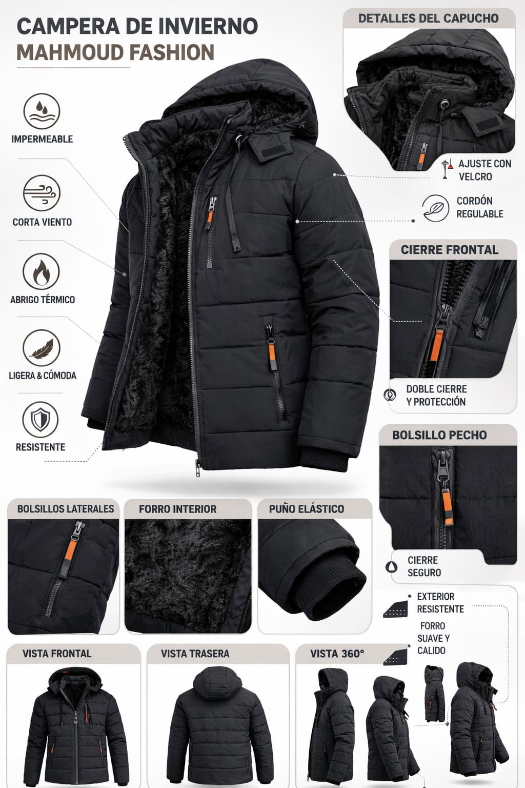 Textura impermeable , GORRA EXTRAÍBLE