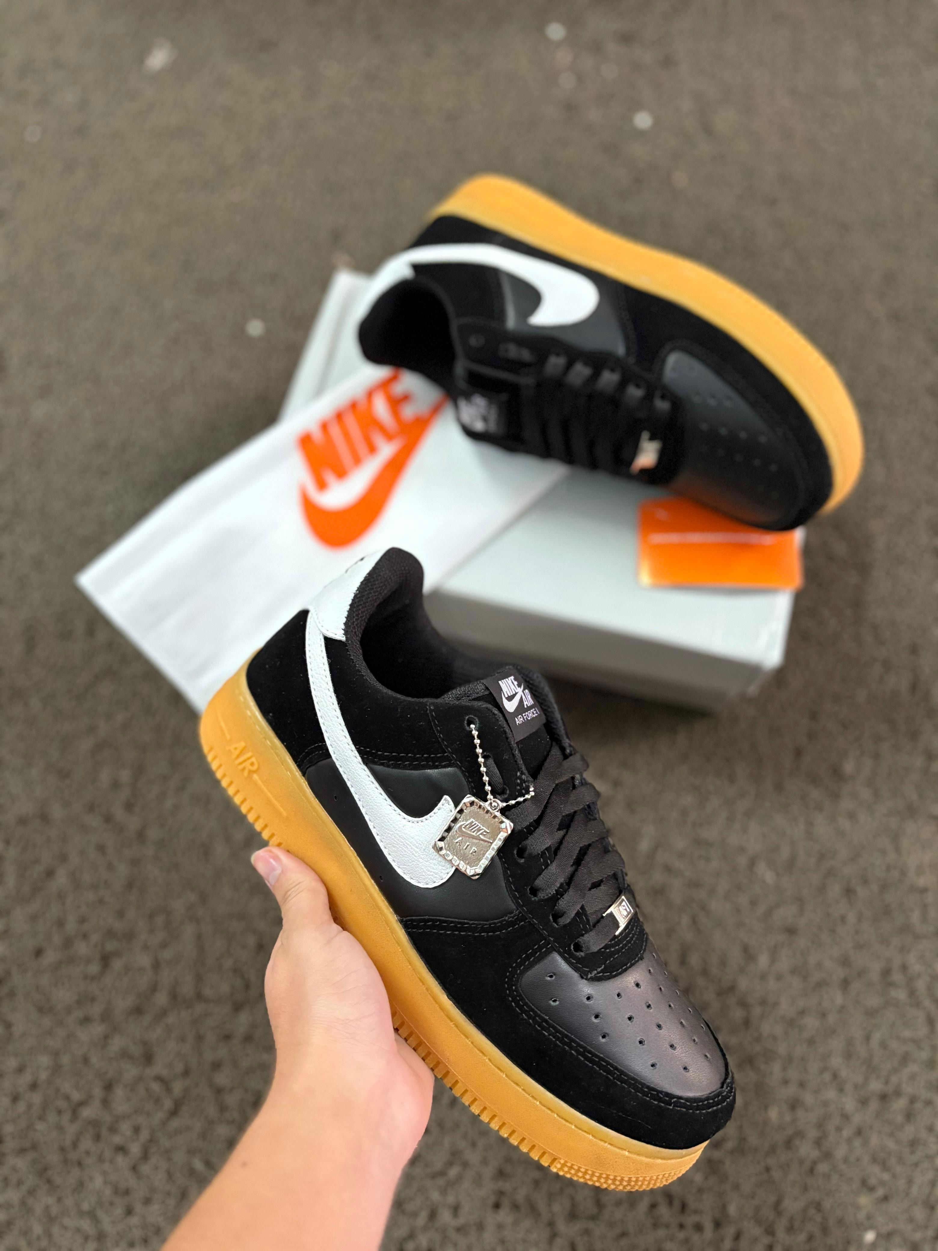 Nike Air Force negra con base marrón